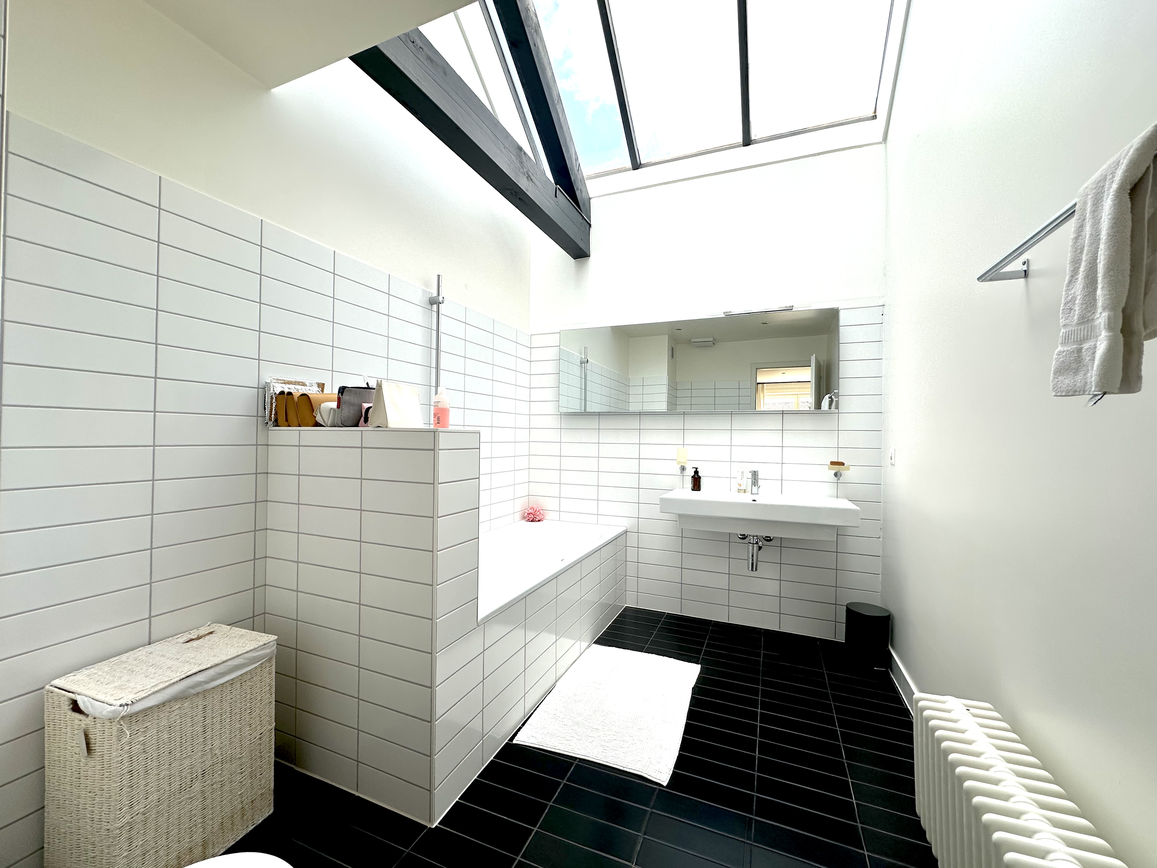 À l’étage, un bureau offre un espace de travail paisible, tandis que la suite principale séduit par ses volumes généreux et sa salle de bains attenante avec WC. Une seconde chambre ainsi qu’une autre salle de bains viennent parfaire cet espace nuit harmonieux.
