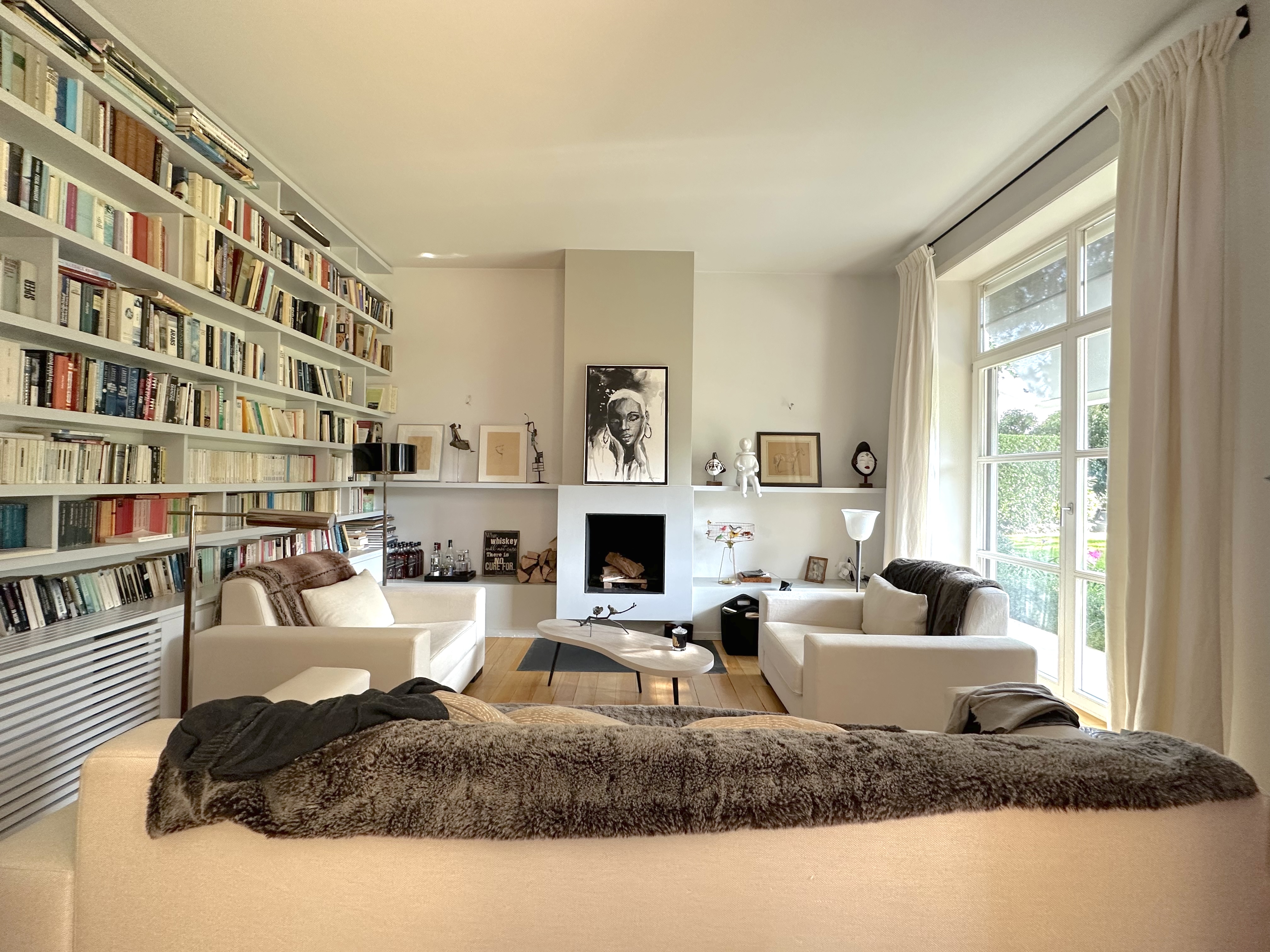 Le rez-de-chaussée se compose d’une élégantes salle à manger, d’un salon donnant sur la terrasse et le jardin ainsi qu’une bibliothèque avec cheminée. Ces trois pièces sont en enfilade et invitent à la détente. Une luxueuse cuisine, parfaite pour un léger repas entre amis et des WC visiteurs complètent cet étage, alliant confort et fonctionnalité.