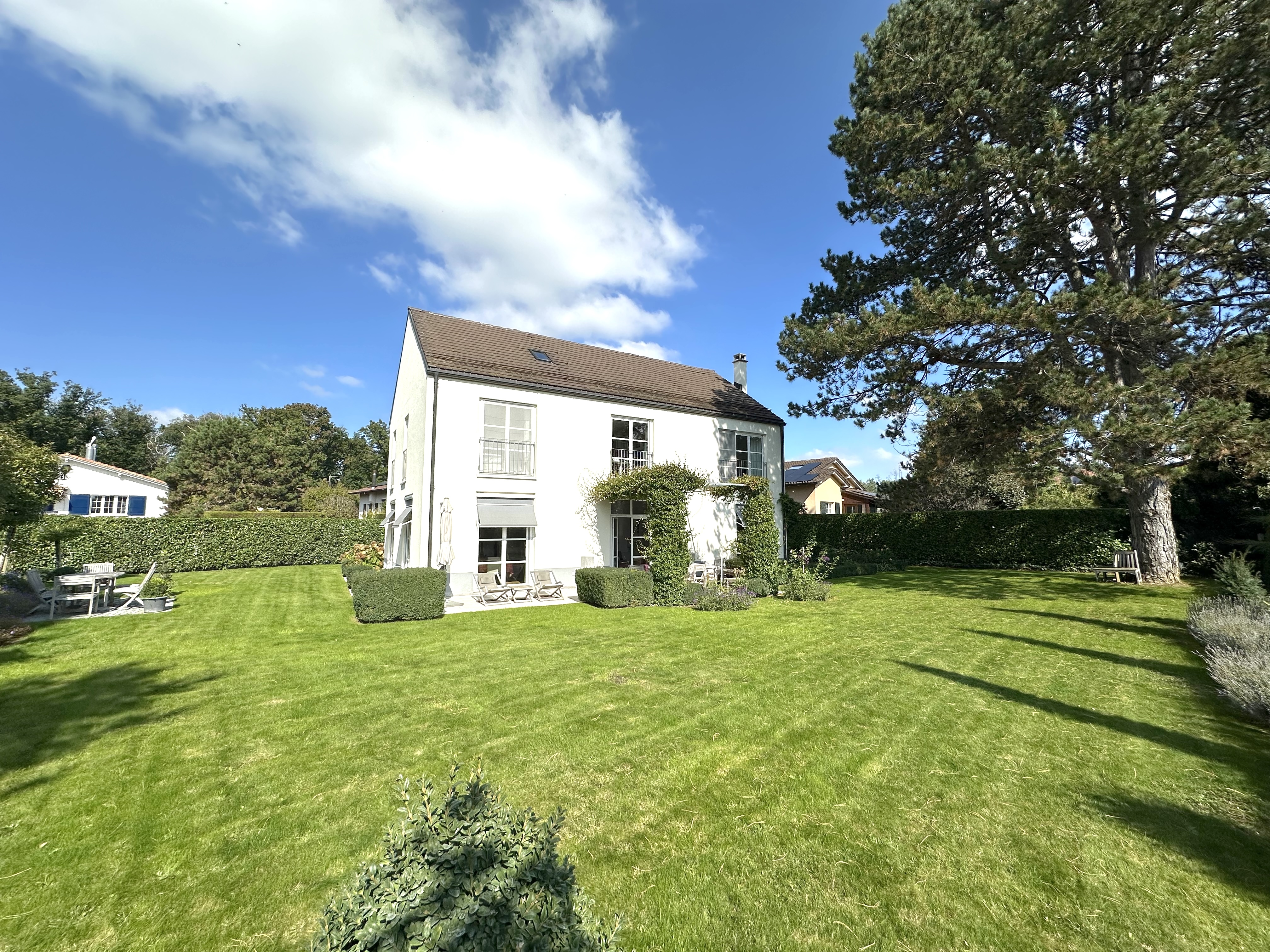 Nichée dans un cadre paisible et verdoyant, à seulement quelques minutes à pied des rives du lac Léman, cette magnifique villa offre un cadre de vie idéal pour des personnes en quête de tranquillité et de raffinement pendant une à plusieurs semaines.