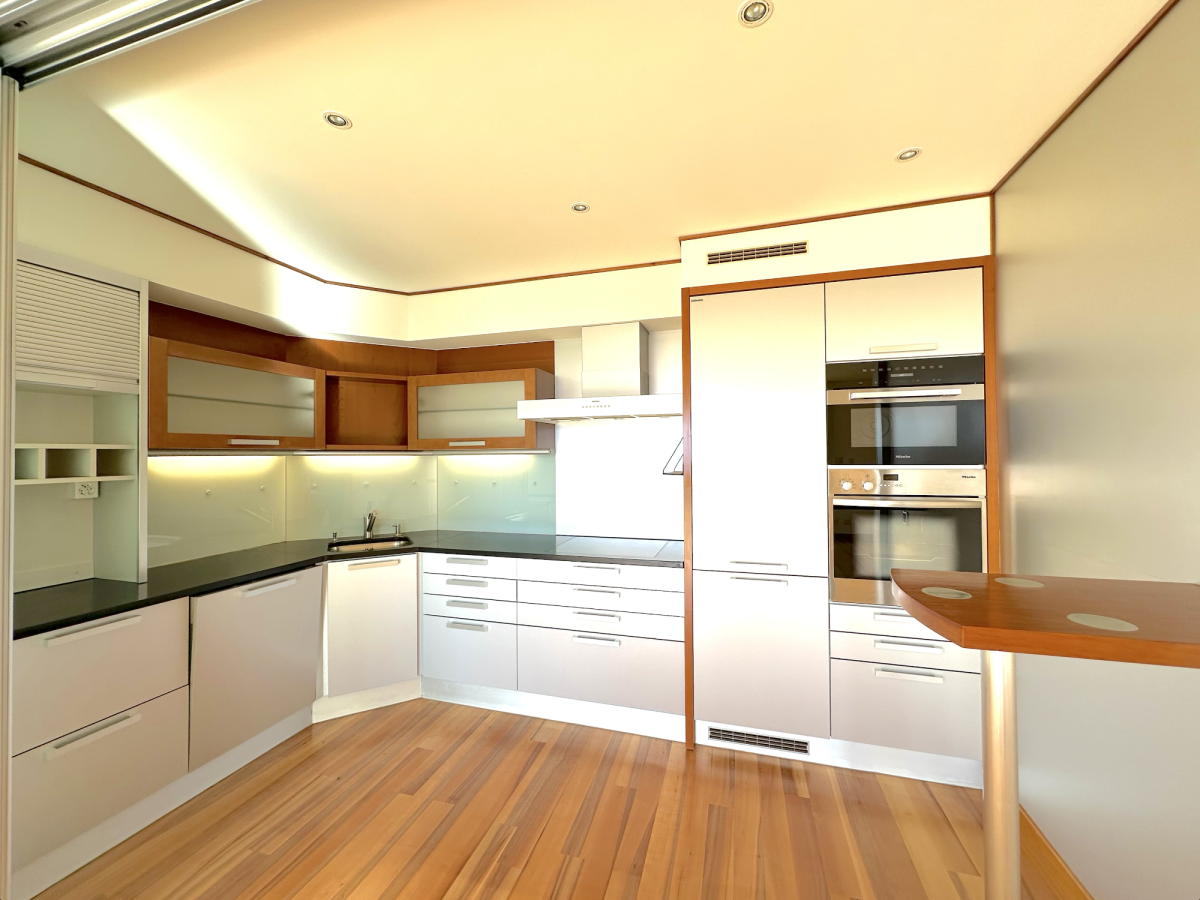Dès l’entrée, un hall spacieux avec armoires murales et dressing intégré accueille chaleureusement les résidents et leurs invités. Le séjour lumineux, prolongé par une cuisine moderne et fonctionnelle, s’ouvre sur une magnifique terrasse-balcon de 12,5 m² accessible également depuis les deux chambres, créant ainsi une belle harmonie entre intérieur et extérieur.